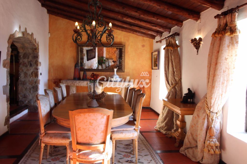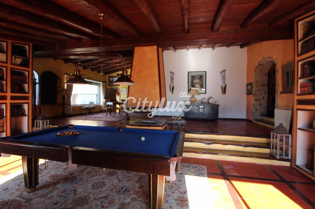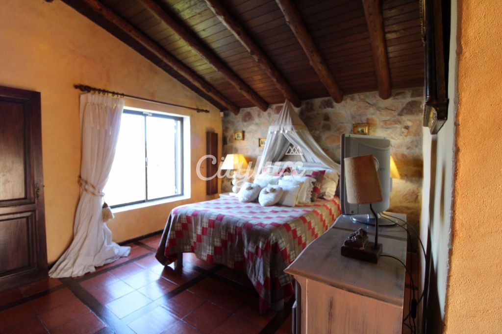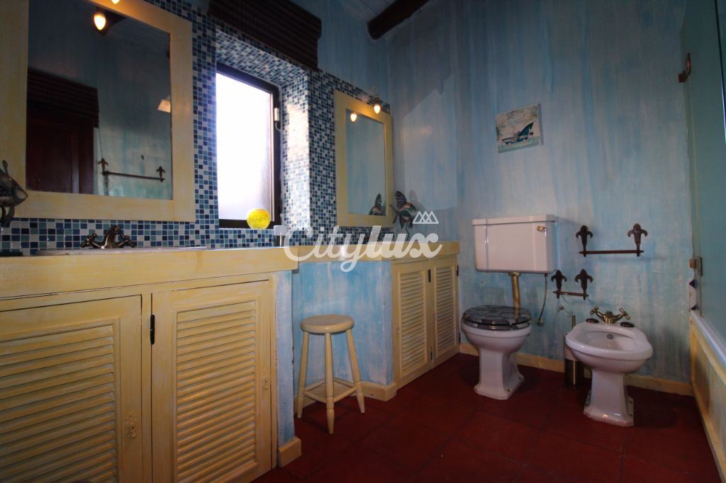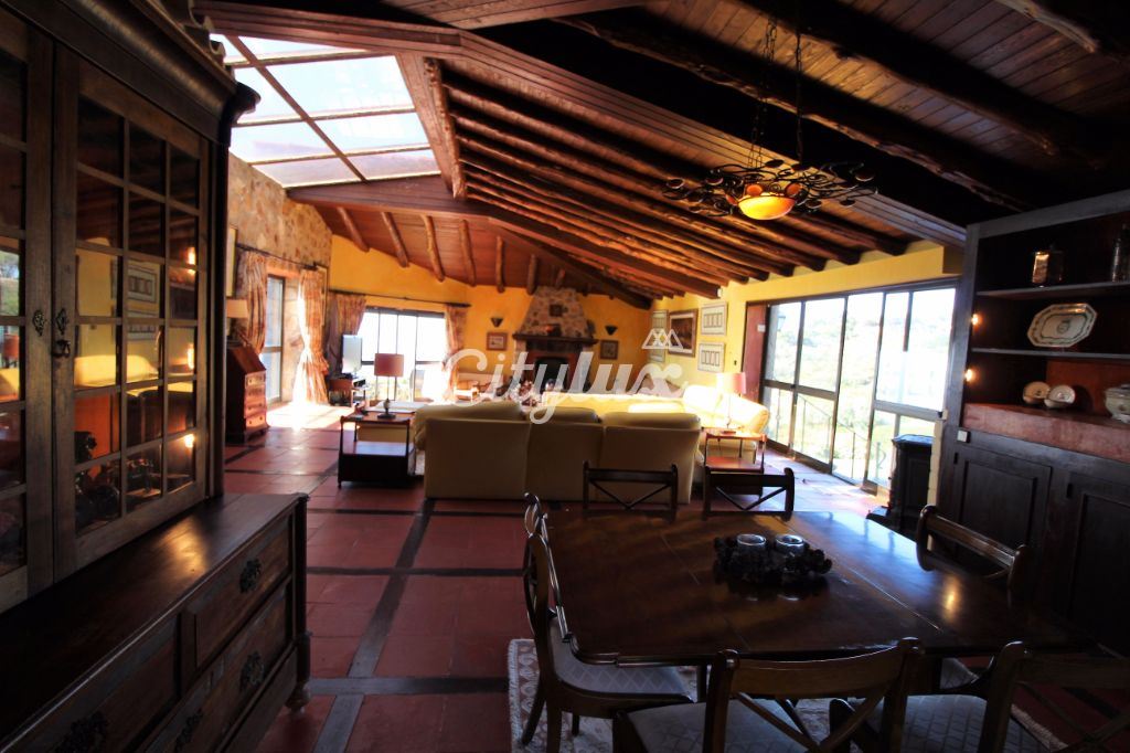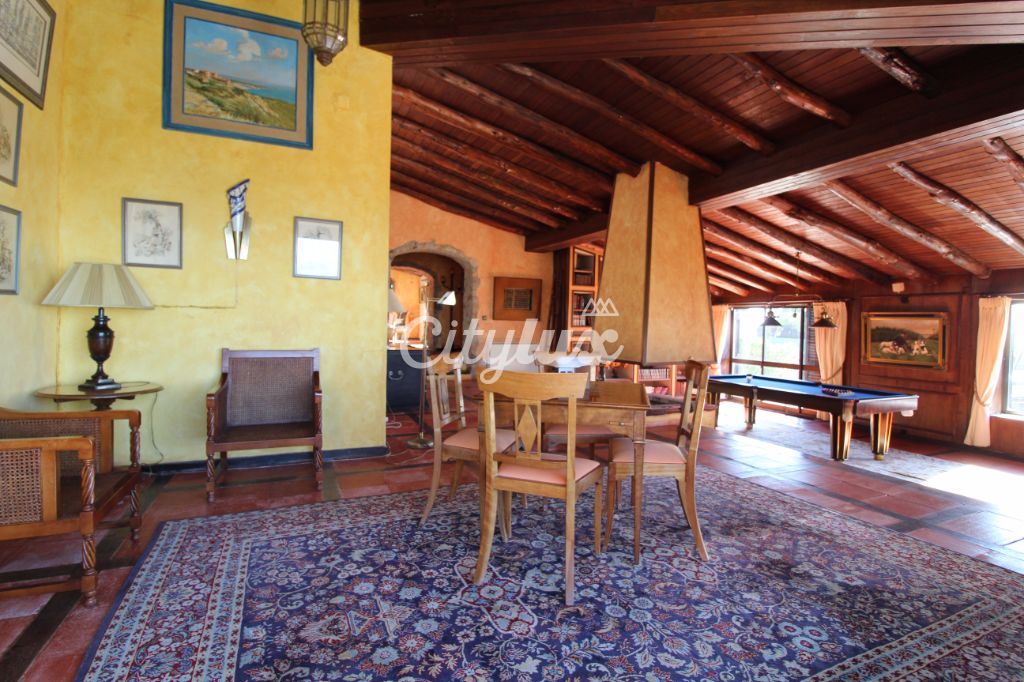 R/c: amplo hall, sala de jogos com lareira, sala de estar com lareira, sala de jantar, escritório, jardim de inverno, cozinha totalmente equipada, 3 quartos, um deles em suite e 3wc.