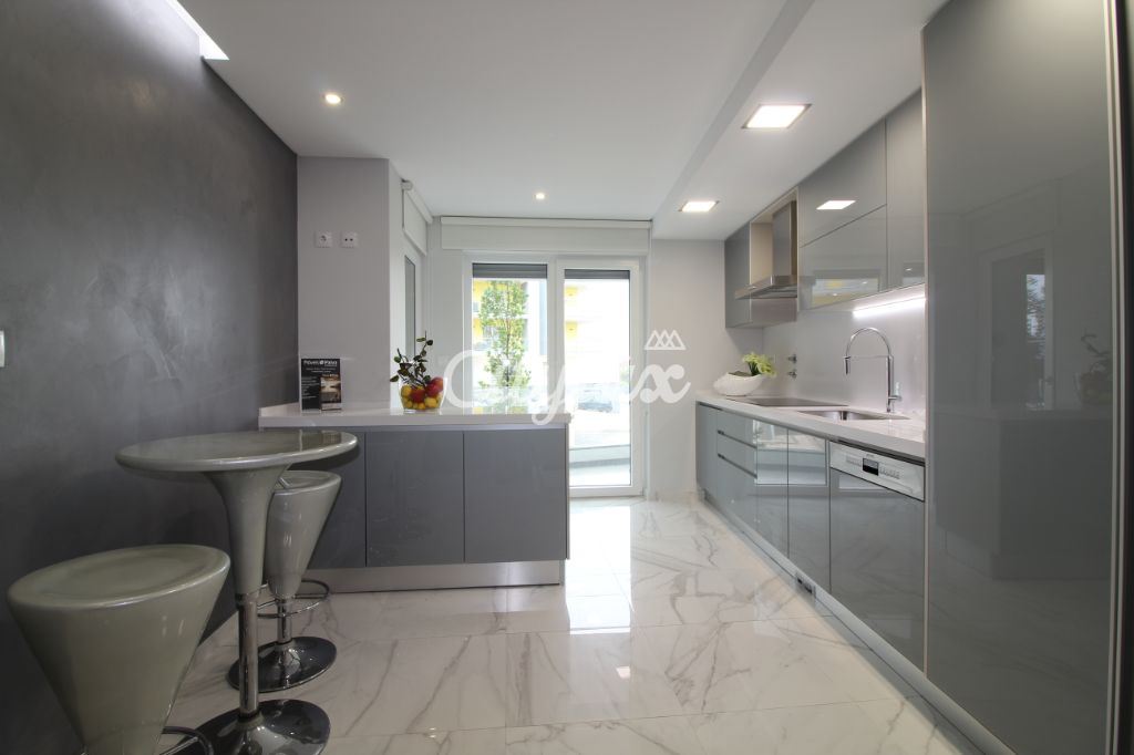 Apartamento acabado de construir com cozinha totalmente equipada, sala 36m² com varanda. Duas suites de 22m² e 15m² e ainda 2 quartos de 14m², todos com roupeiros e varanda. Existem ainda 3 wc’s completas e 2 Lugares de garagem em Box.