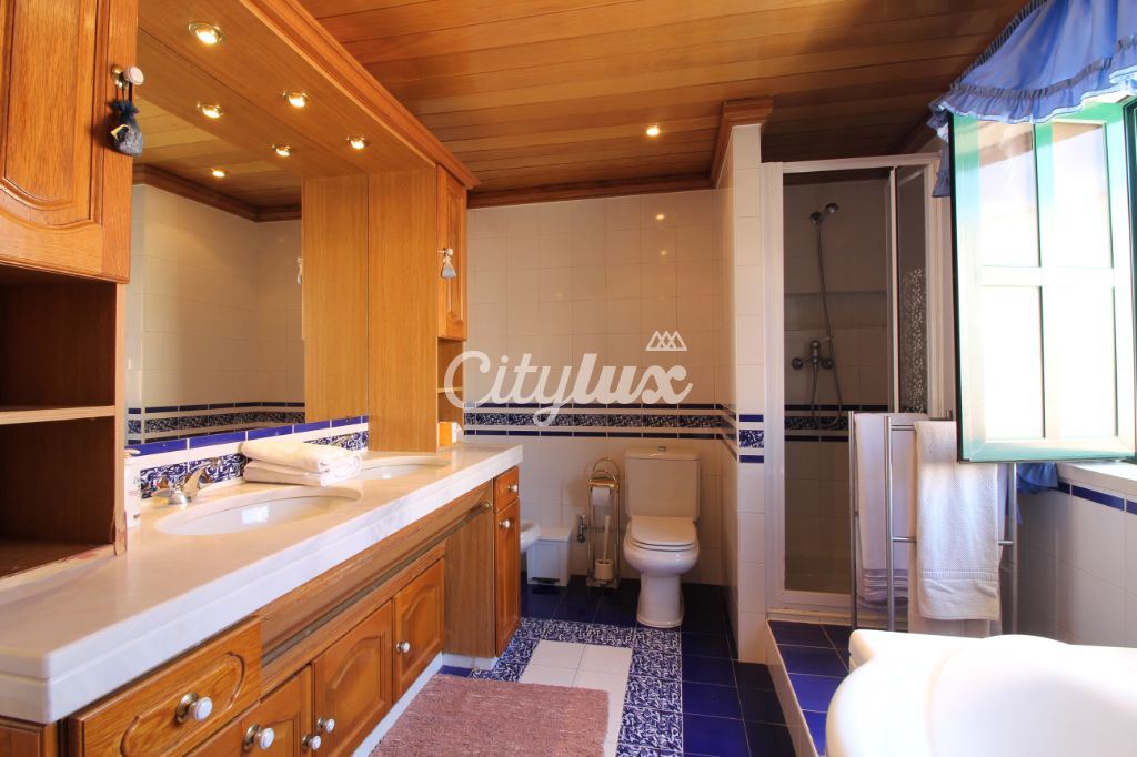 No 1º piso encontram-se 3 quartos, um deles em suite com closet e com vista de mar e terraço, e ainda 2 casas de banho.