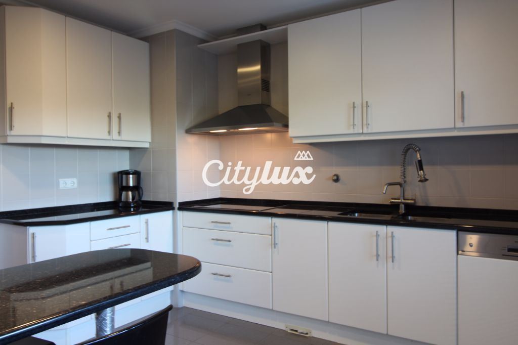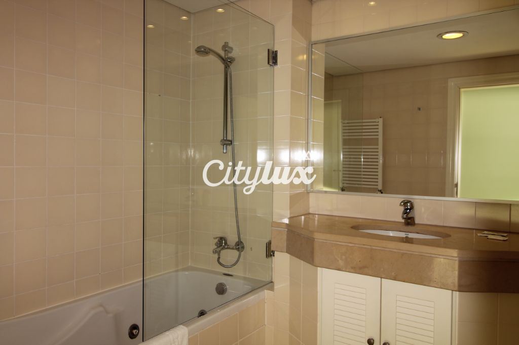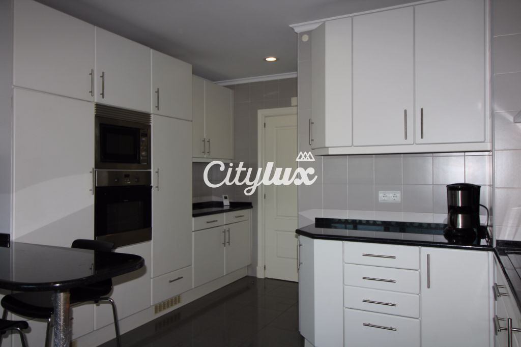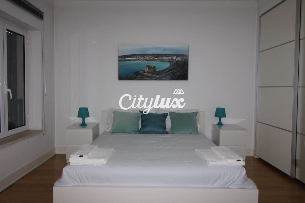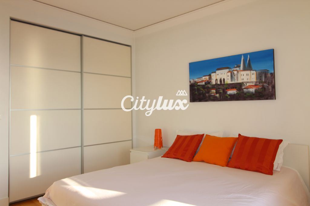 Apresenta 1 sala de 43m², com acesso a uma varanda com vista de mar. Conta ainda com 1 suite com 18m² voltada para o mar e 1 quarto com 13m², ambos com roupeiro. Existem 2 wc completos. O apartamento tem também 1 despensa e sistemas centrais de aquecimento e aspiração.