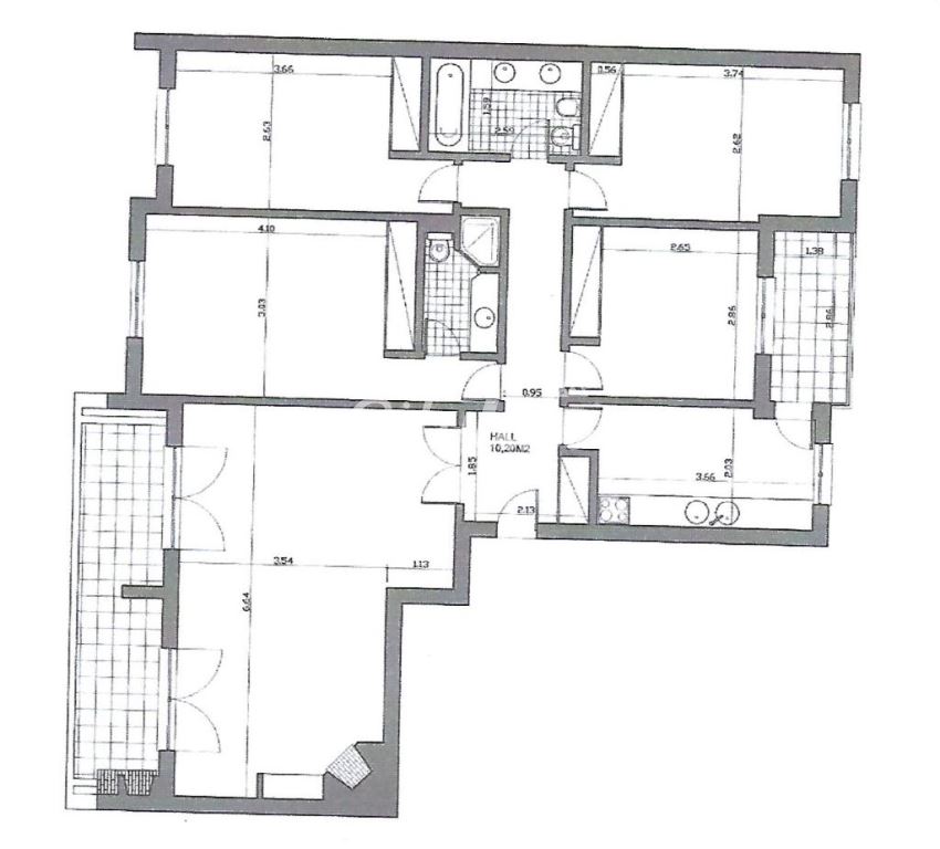 É composto por um hall de 10m2, uma sala com 35m² com lareira e varanda com churrasqueira, uma cozinha semi-equipada e com varanda, 4 quartos, um deles em suite, todos com roupeiros e 2 casas de banho.